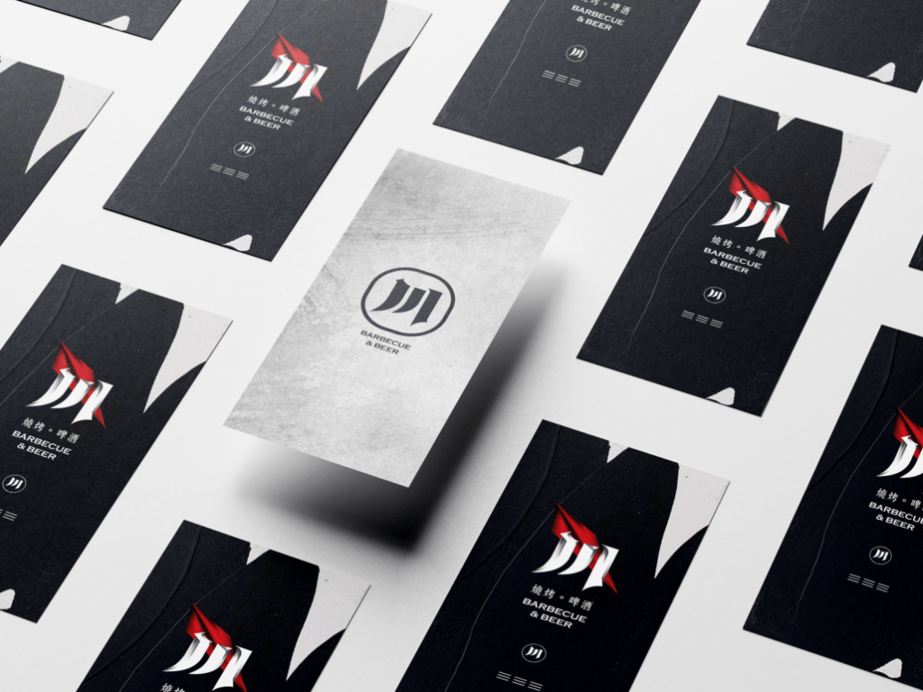 業主主要販售為燒烤及啤酒,設計上,利用「川」字當作設計主軸,搭配店家的日式風格去做整體考量設計